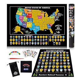 Scratch Off Map of United States + All 63 US National Parks Scratch Off Poster, 85 USA Landmarks, Travel Map Kit, 50 State Photo Wall Adventure Maps