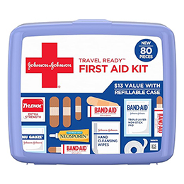 Band-Aid Travel Ready Portable Emergency First Aid Kit for Minor Wound Care with Assorted Adhesive Bandages, & More